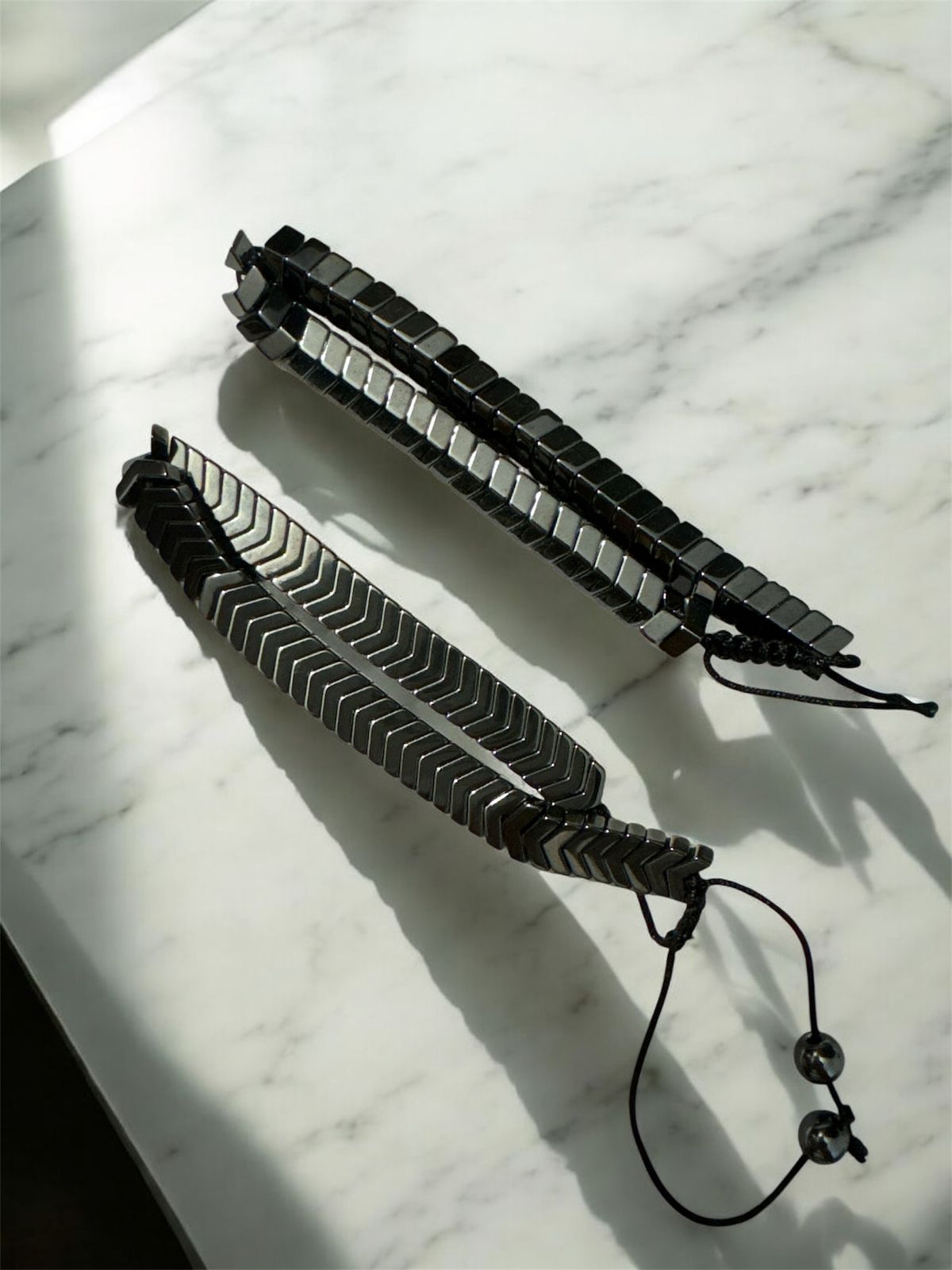 Add a dash of edgy style to your wrist with the Shadow Chevron Bracelet. Its sleek chevron design casts a cool, mysterious vibe perfect for those who like to stand out. Lightweight and comfortable, this bracelet is your new go-to accessory for adding a playful twist to any outfit. Whether solo or stacked, it’s sure to catch some curious glances!
